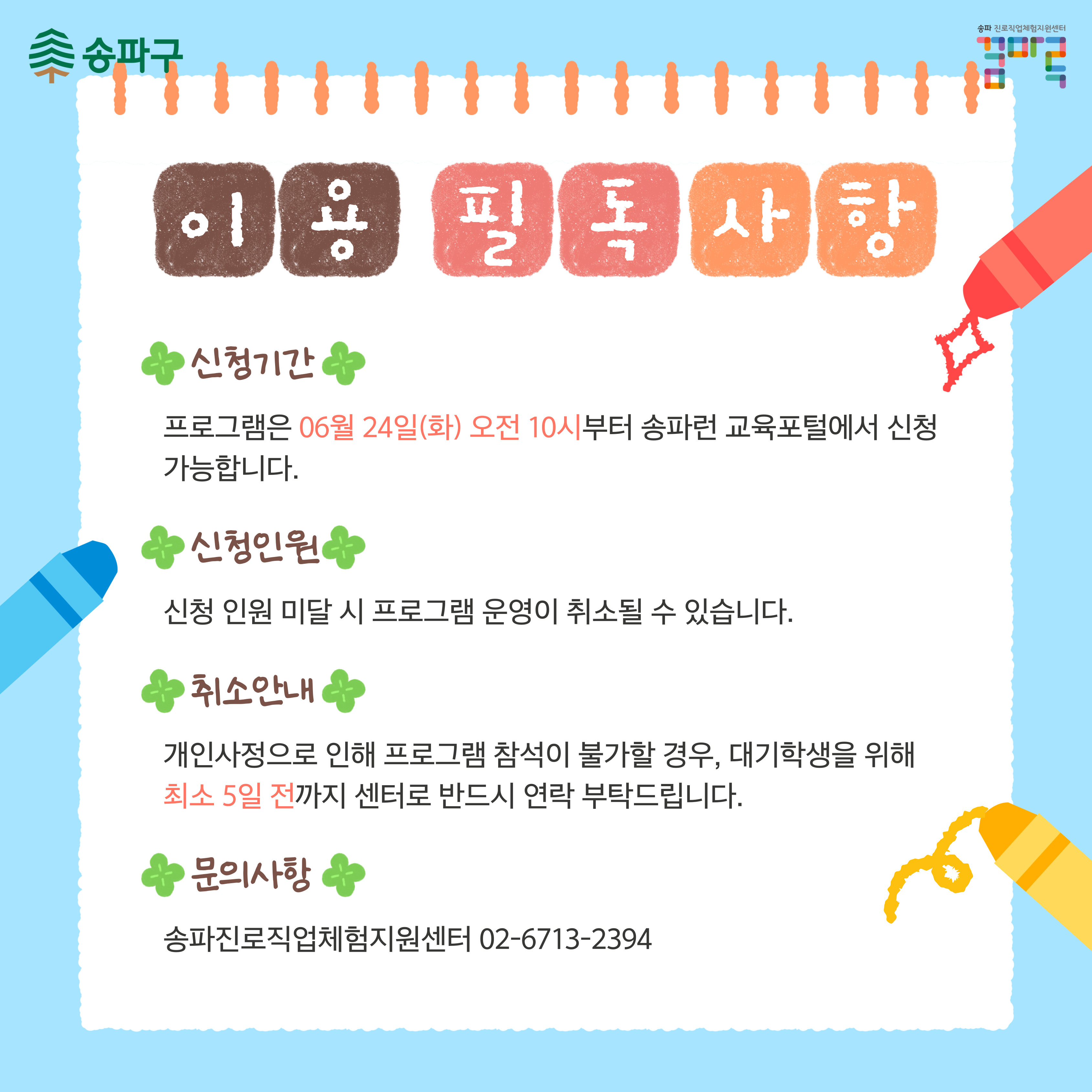 프로그램은 06월 24일(화) 오전 10시부터 송파런 교육포털 홈페이지에서 신청 가능합니다.