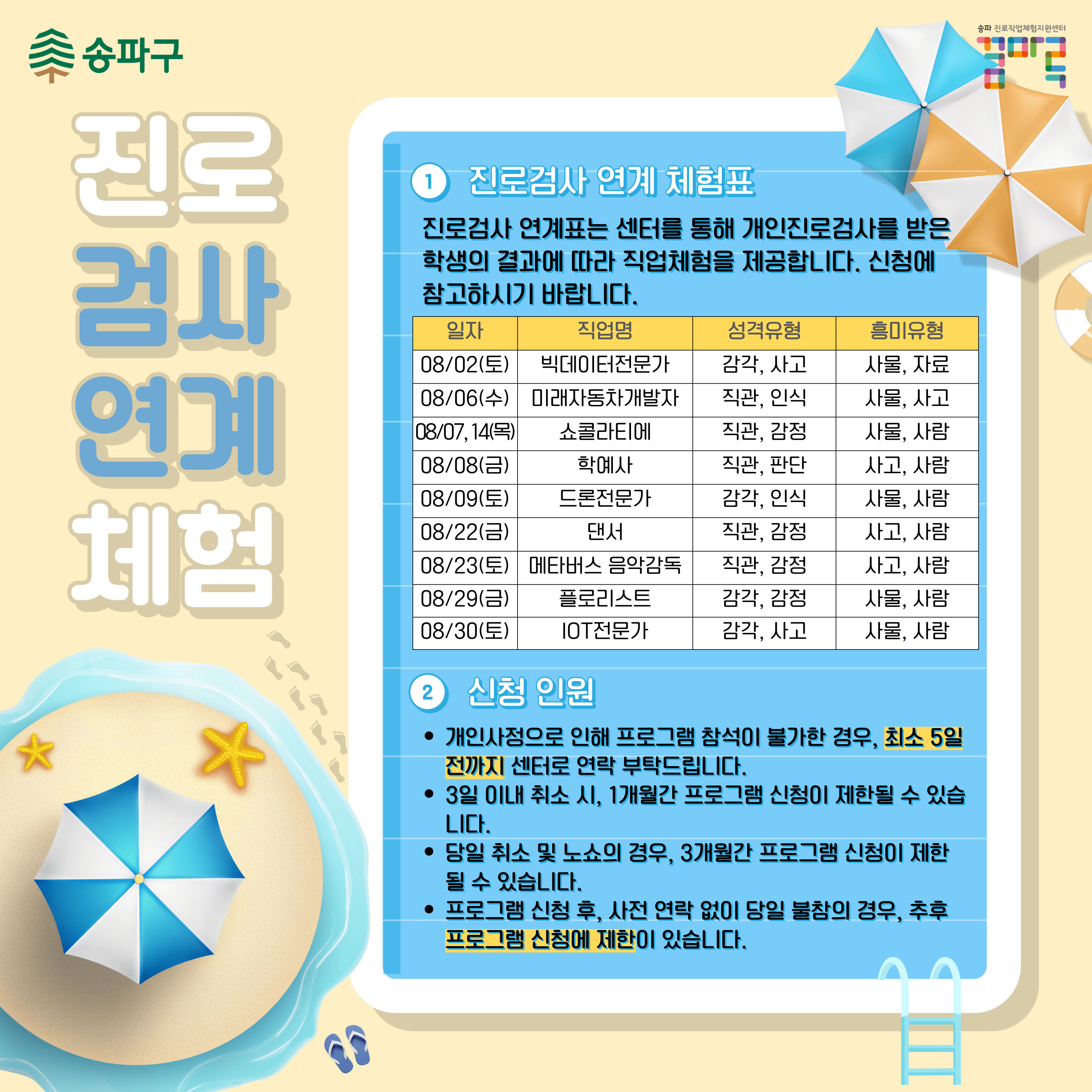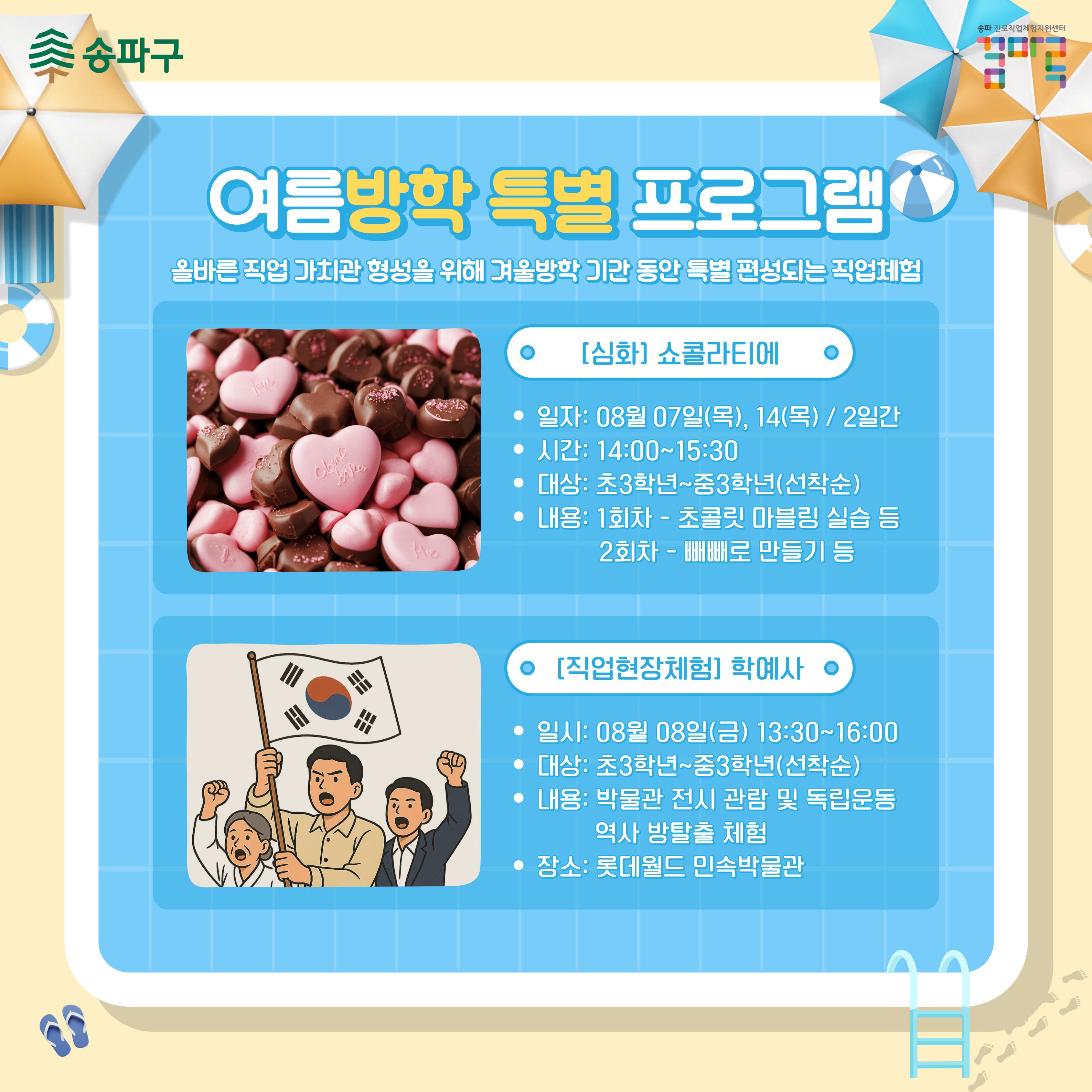 [송파진로직업체험지원센터] 2025년 8월 프로그램 안내