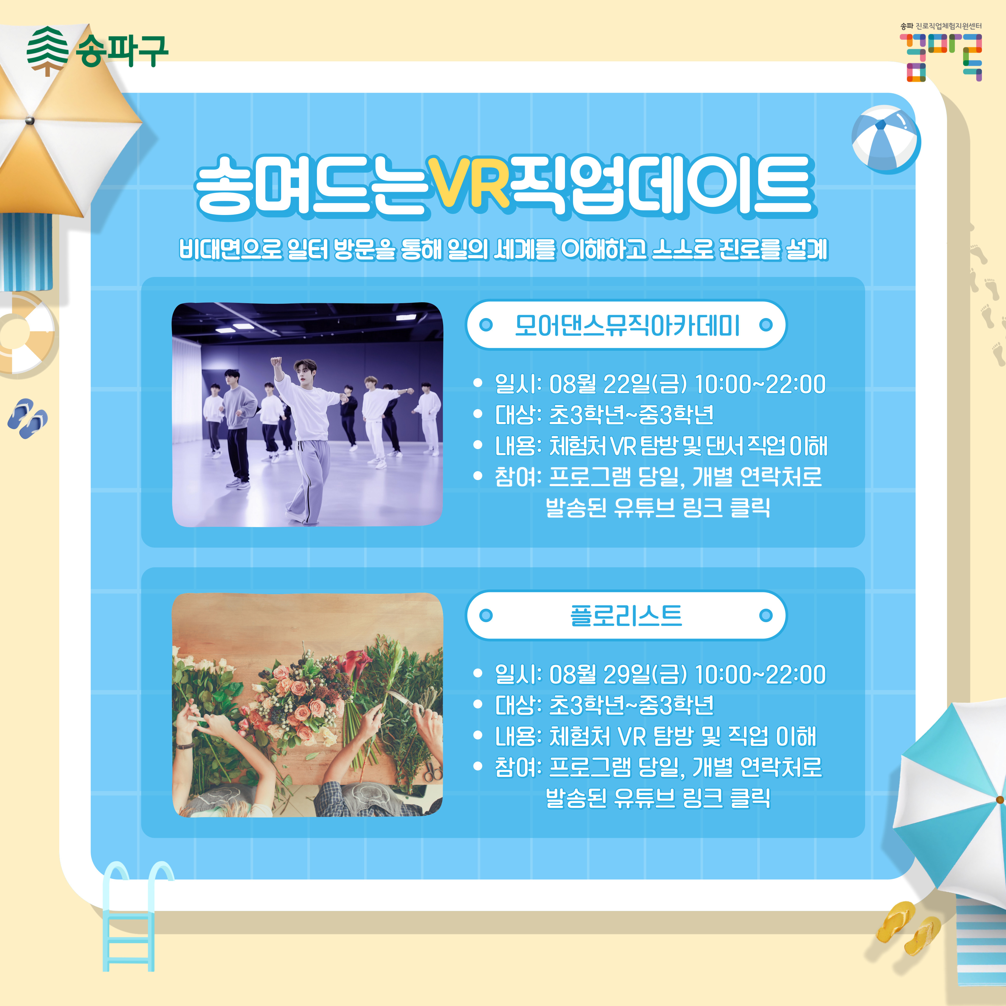 - 내용: 송파 관내 직업체험처 비대면 탐방 및 직업 이해 (댄서, 플로리스트 등)