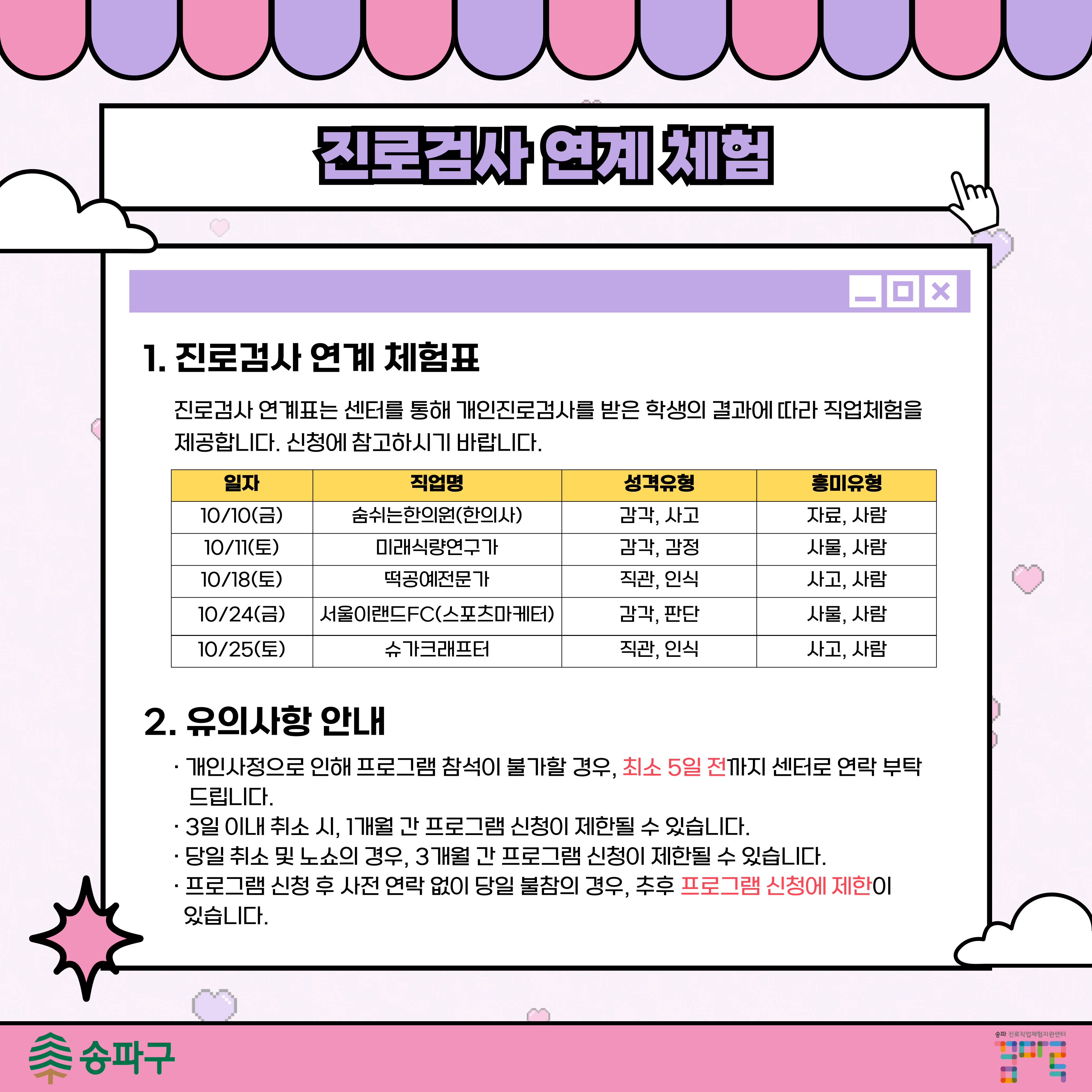 [송파진로직업체험지원센터] 2025년 10월 프로그램 안내