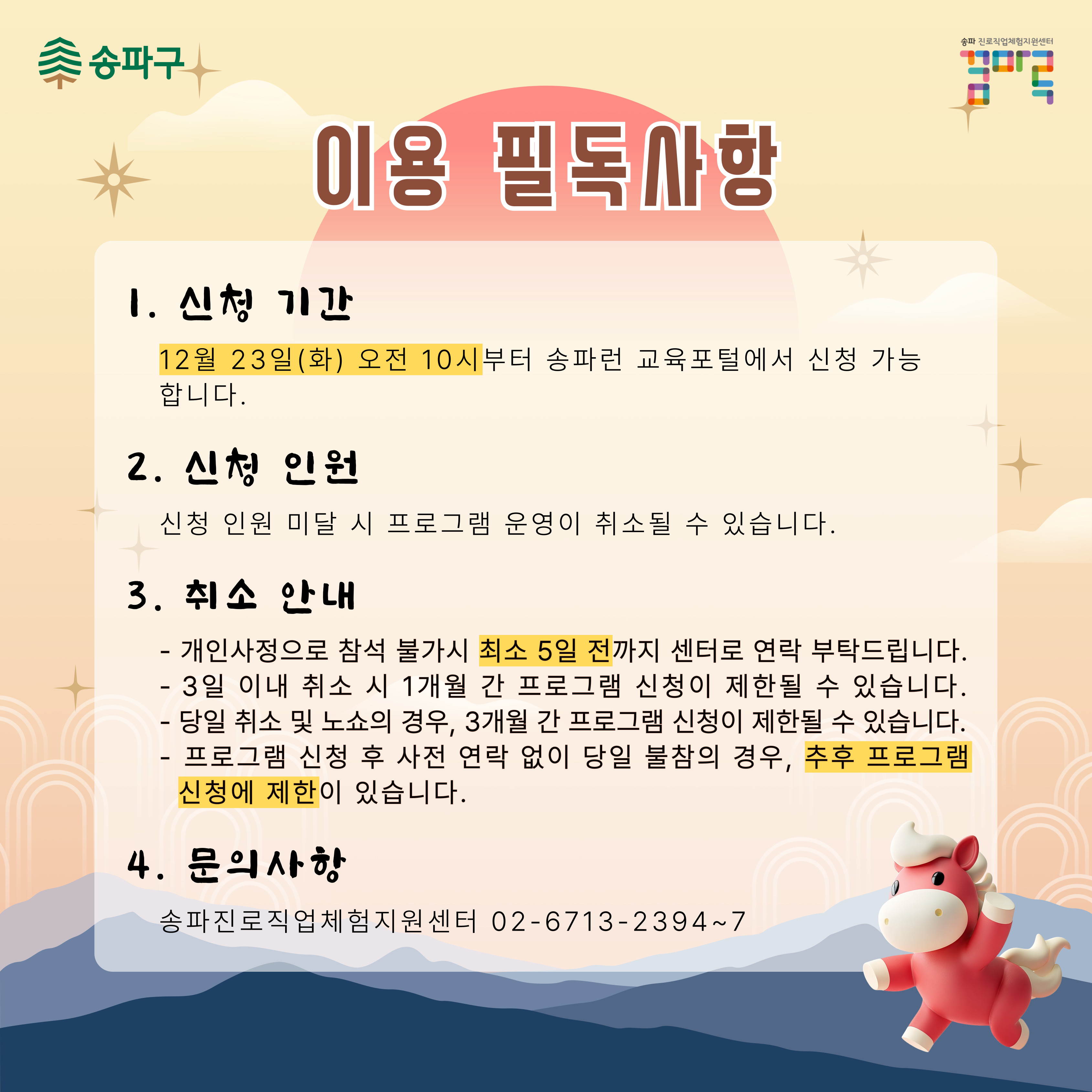 프로그램은 12월 23일(화) 오전 10시부터 송파런 교육포털 홈페이지에서 신청 가능합니다.