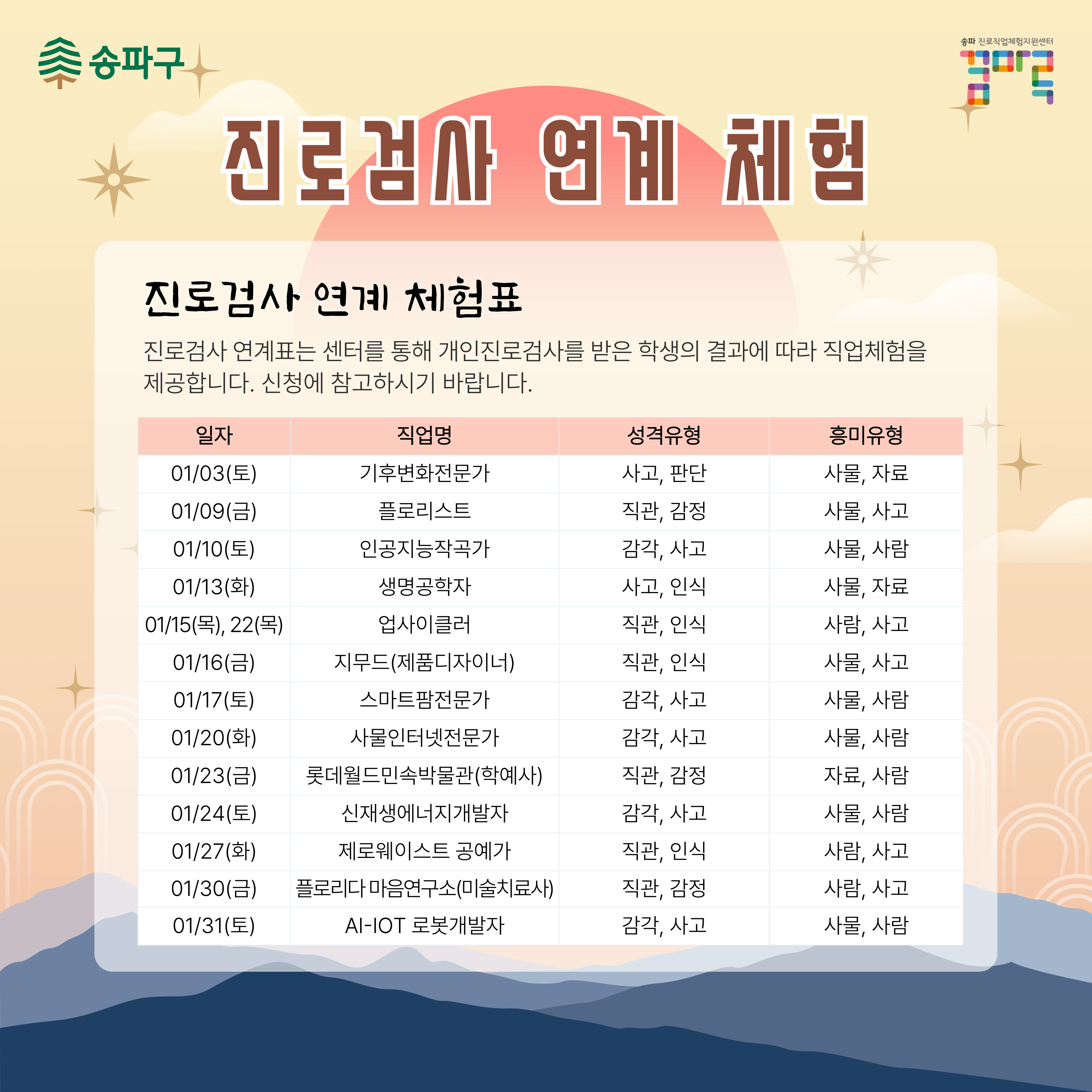 [송파진로직업체험지원센터] 2026년 1월 프로그램 안내