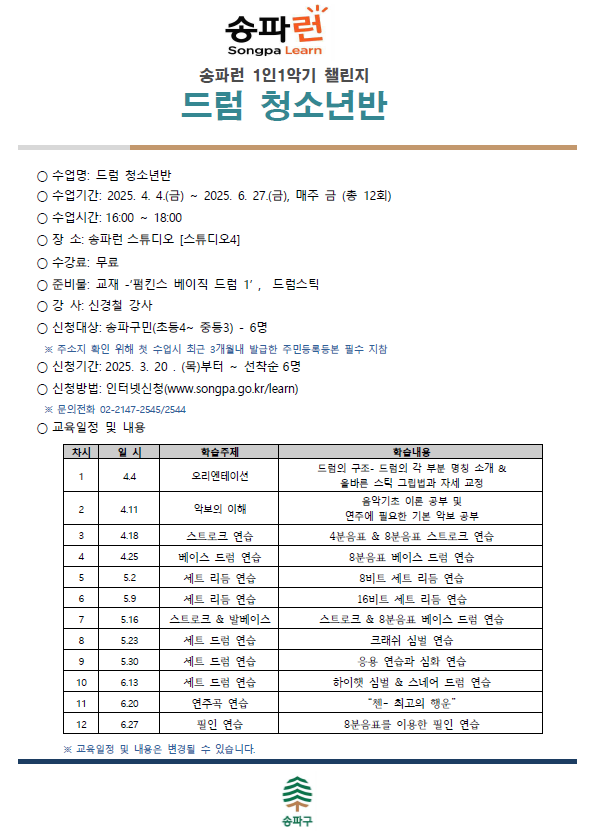 송파런 1인1악기 챌린지-드럼(청소년반)