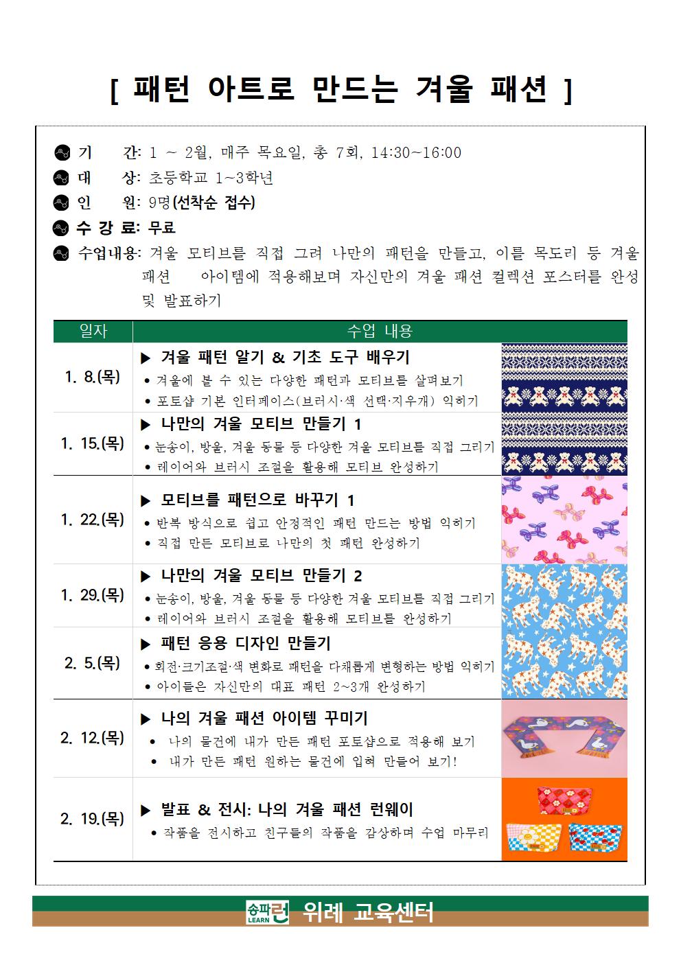 [송파런 위례] 패턴 아트로 만드는 겨울패션쇼(2026년 기준 초1-3)